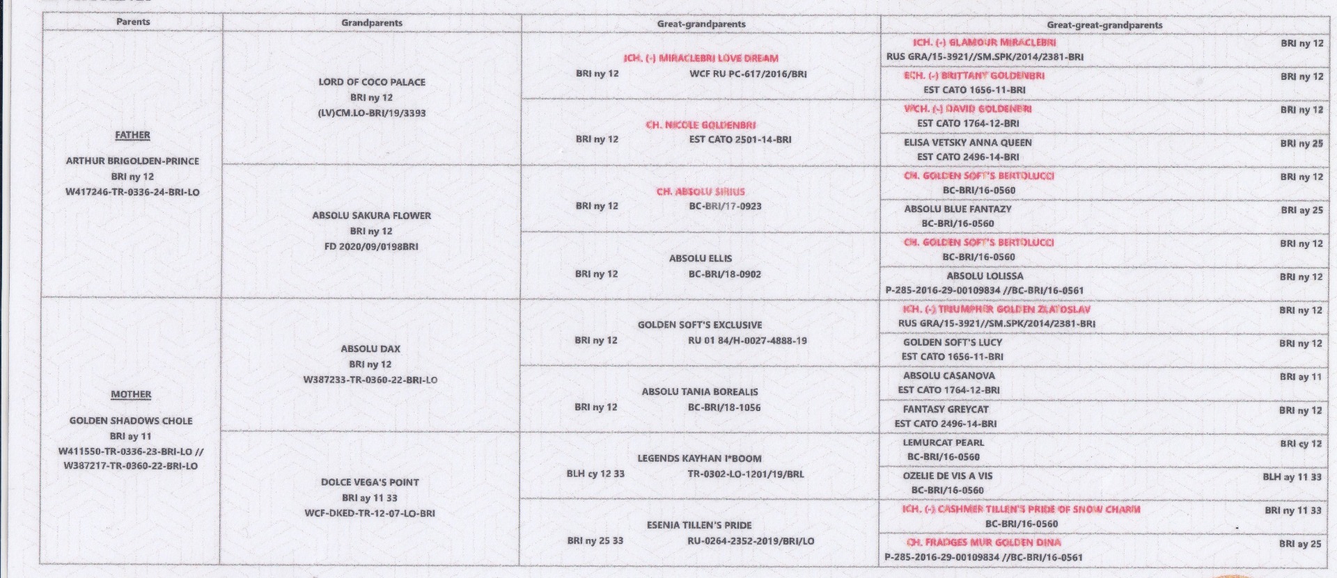 - Otec: Arthur Brigolden-Prince*TR, ( BSH ny 12 )