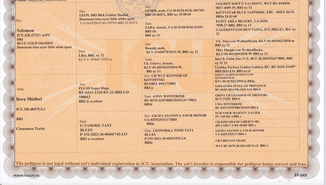 - Otec: Solomon Heavenly, BSH ay 11 61, Blue Golden Shaded